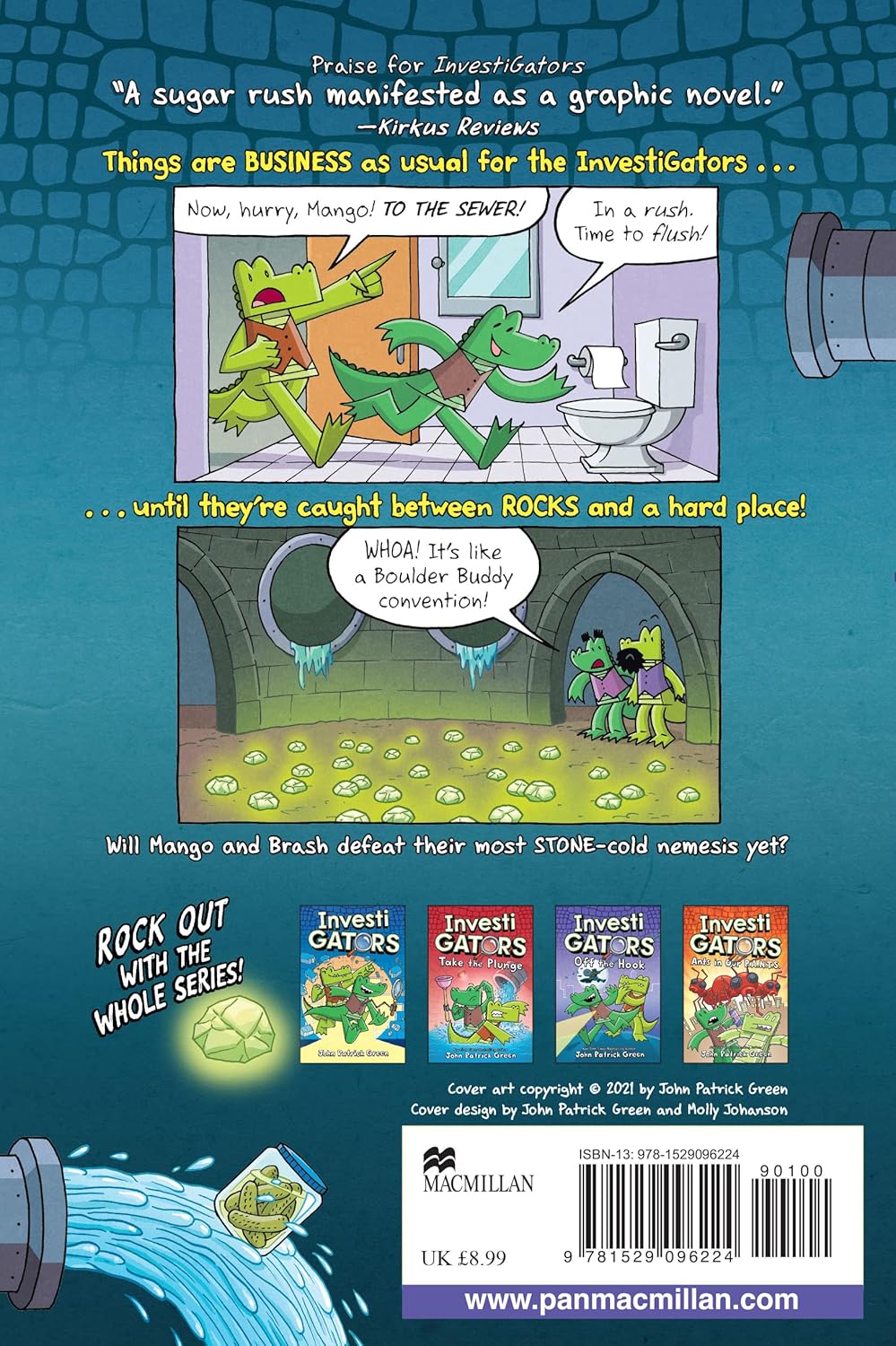 Undercover as Mikey Eyebrows and Vinnie Beardface, Mango and Brash investigate the mysterious glowing rocks that are turning up in the city. Could a rocky relationship from the InvestiGators' past be behind this strange scheme? Find out in their most dangerous mission yet!