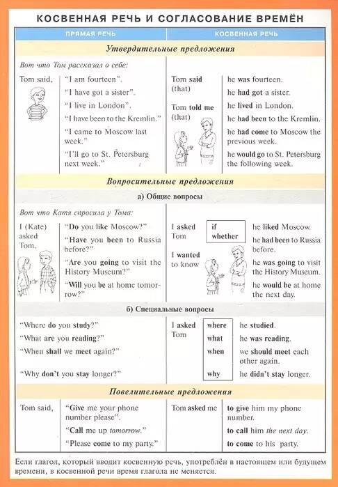 Косвенная речь и согласование времен (англ. язык). Наглядно-раздаточное пособие