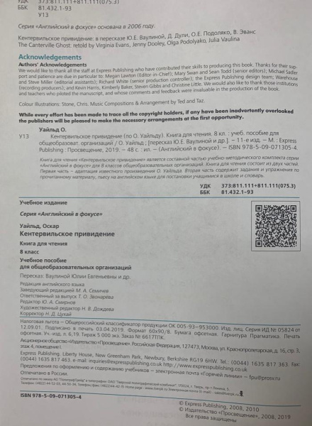 "Английский в фокусе (Spotlight)" Книга для чтения. The Canterville Ghost. 8 класс.
