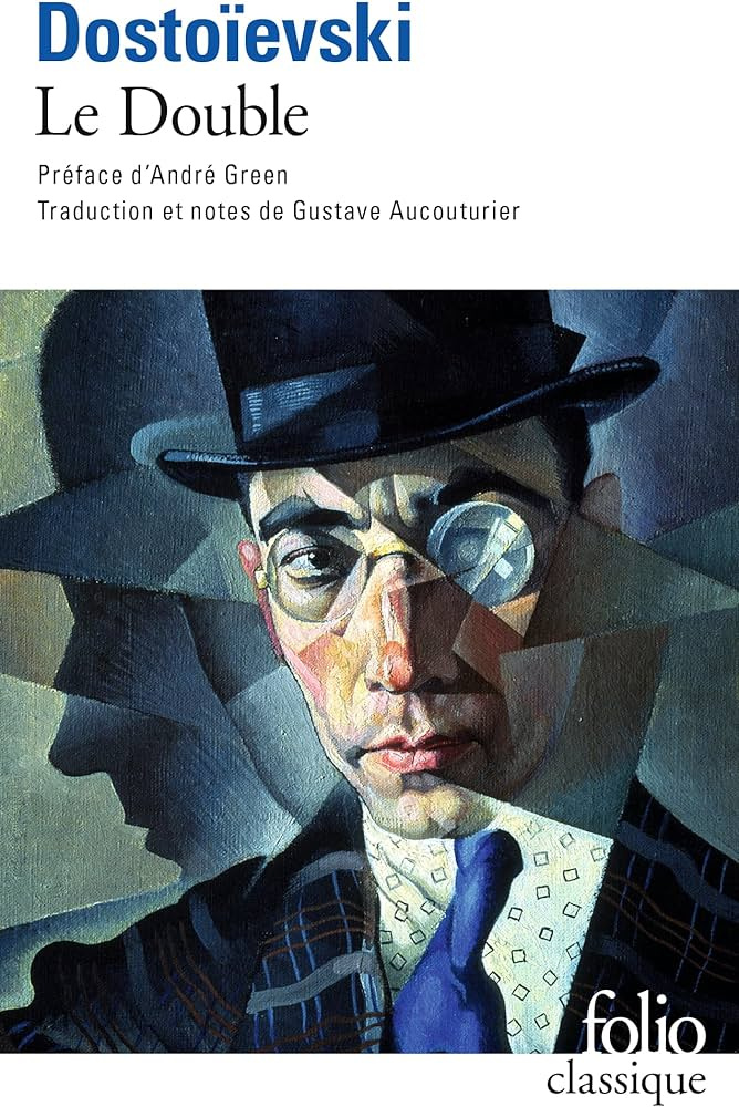 "Герой нашей повести, весь изможденный, вошел в свою комнату; не сняв ни пальто, ни шляпы, он пересек прихожую и, как удар молнии, остановился на пороге своей комнаты. Незнакомец сидел перед ним, тоже в пальто и шляпе, на его собственной кровати, слегка улыбаясь, и, слегка прищурясь, дружески кивал ему головою. Г-н Голядкин хотел закричать, но не смог, и он упал на стул, чуть не потеряв сознание от ужаса. И, по правде говоря, было в чем. Г-н Голядкин полностью признал своего ночного компаньона. Его ночным спутником был не кто иной, как он сам, сам мистер Голядкин, еще один мистер Голядкин, но совершенно идентичный ему самому; одним словом, то, что во всех отношениях называется его двойником...»