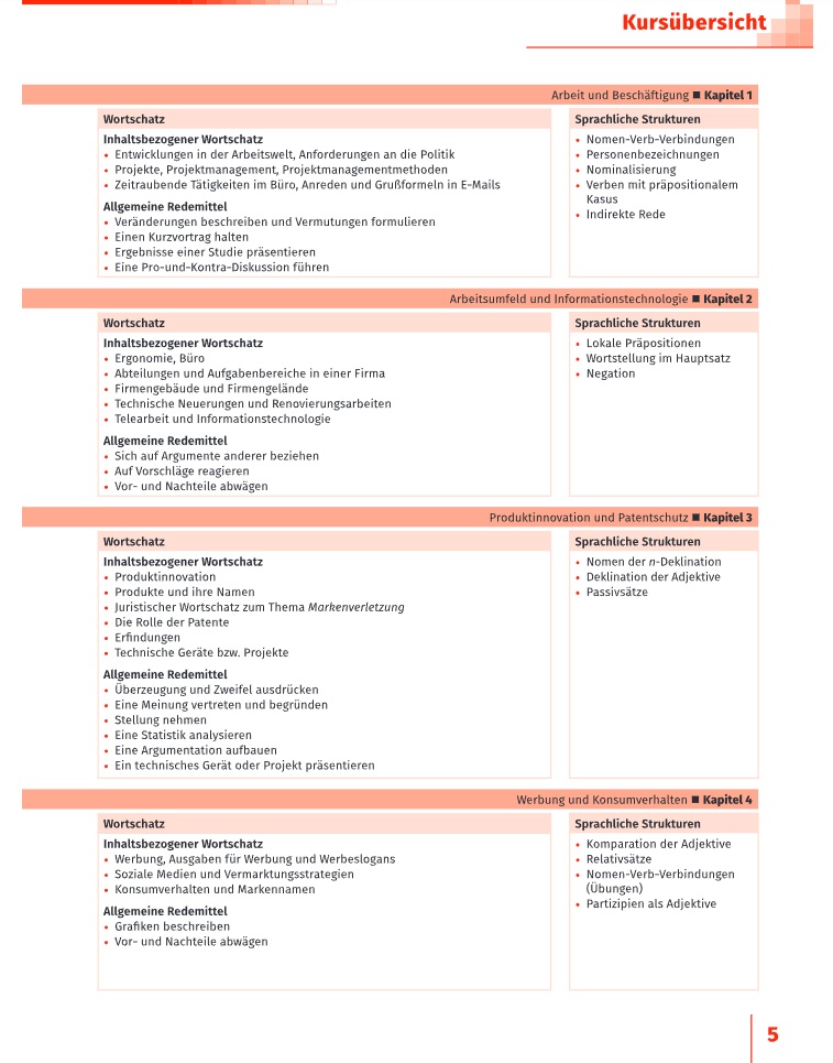 Пособие «Entscheidungen» объединяет учебник и рабочую тетрадь в один том. Это обеспечивает тесную связь между обучением языку и языковой подготовкой/практикой. Обзор целей обучения в начале каждой главы позволяет учащимся быстро сориентироваться и дает общее представление о темах, содержании и ключевых моментах.