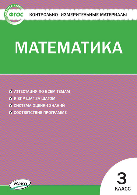 В пособии представлены контрольно-измерительные материалы по математике для 3 класса. Все задания соответствуют программе общеобразовательных организаций и требованиям к уровню подготовки учащихся. Систематическая работа с материалами сборника позволит обучить школьников работе с тестами, что поможет в дальнейшем успешно выполнить задания государственной аттестации. На предлагаемые материалы получены положительные отзывы после их апробации в трех регионах России в течение 2009/2010 учебного года. Издание адресовано учителям начальных классов, а также школьникам и их родителям.