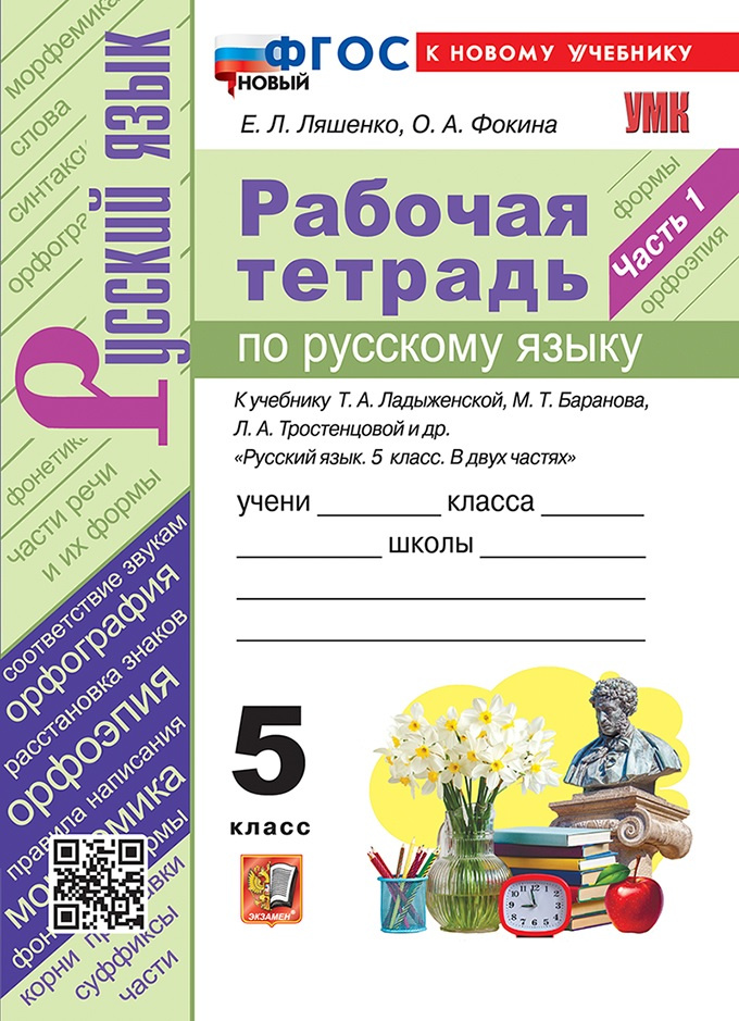 Ляшенко Е.Л. Рабочая Тетрадь по Русскому Языку 5 Класс. Ладыженская, Баранов, Тростенцова. Часть 1. ФГОС Новый (к новому учебнику)