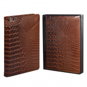 Ежедневник недатированный ESCALADA, А5+, 160 л., АЛЛИГАТОР КОРИЧНЕВЫЙ (кожзам: 175x245 мм, твёрдый переплёт с поролоном, материал обложки: искусственная кожа "Аллигатор"; способ крепления блока: ниткошвейный; вн. блок: 160 л., кремовый офсет 80 г/м², печать в две краски (линия), справочный материал: есть; перфорация углов блока: нет; отделка среза: окрашивание пантоном; закладка/-и: два ляссе, каптал: есть; форзац: печать пантоном, тиснение фольгой, персонализация возможна: нет; индивидуальная упаковка: промостикер + подарочная картонная коробка с ПВХ-крышкой + ПЭТ-пакет)