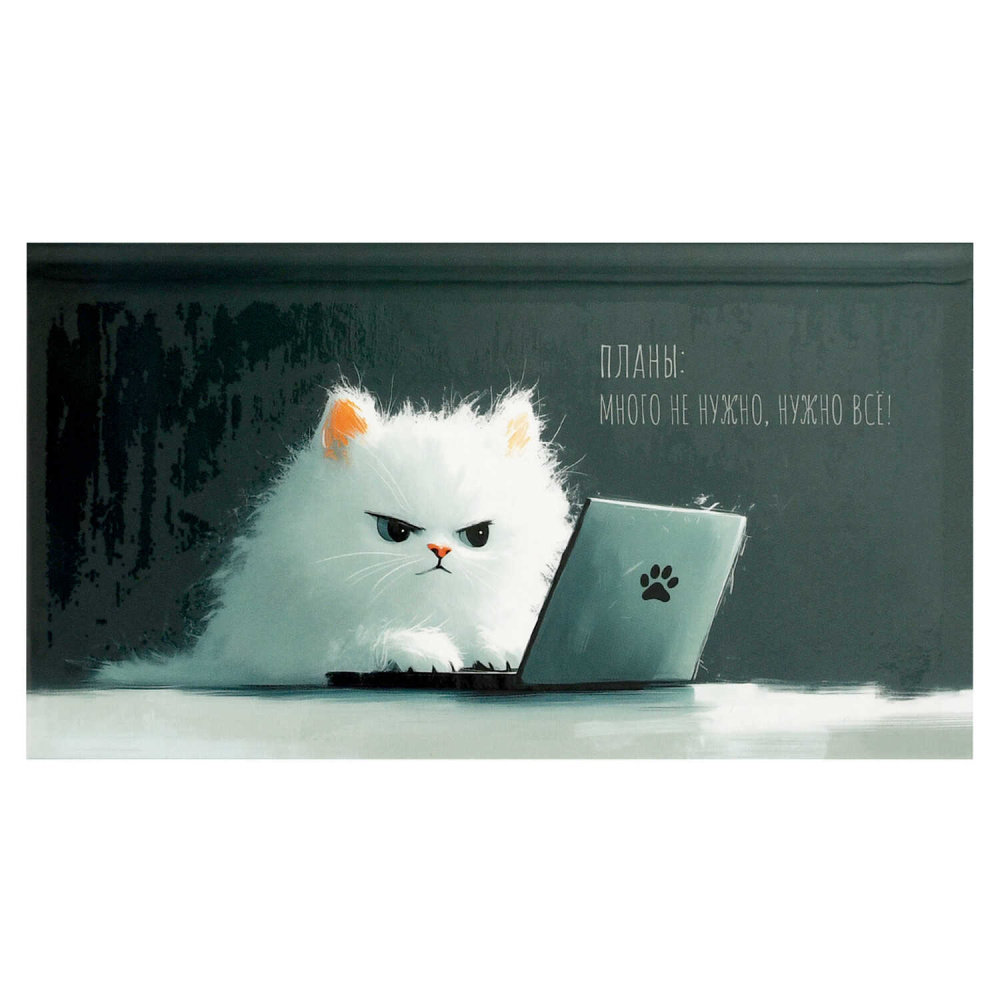 Ежедневник недатированный КОТ С НОУТБУКОМ / 171х93 мм, 64 л., твёрдый переплёт 7БЦ, полноцветная печать, выборочный УФ-лак, матовая ламинация. Блок - белый офсет, 65 г/м², печать в одну краску/