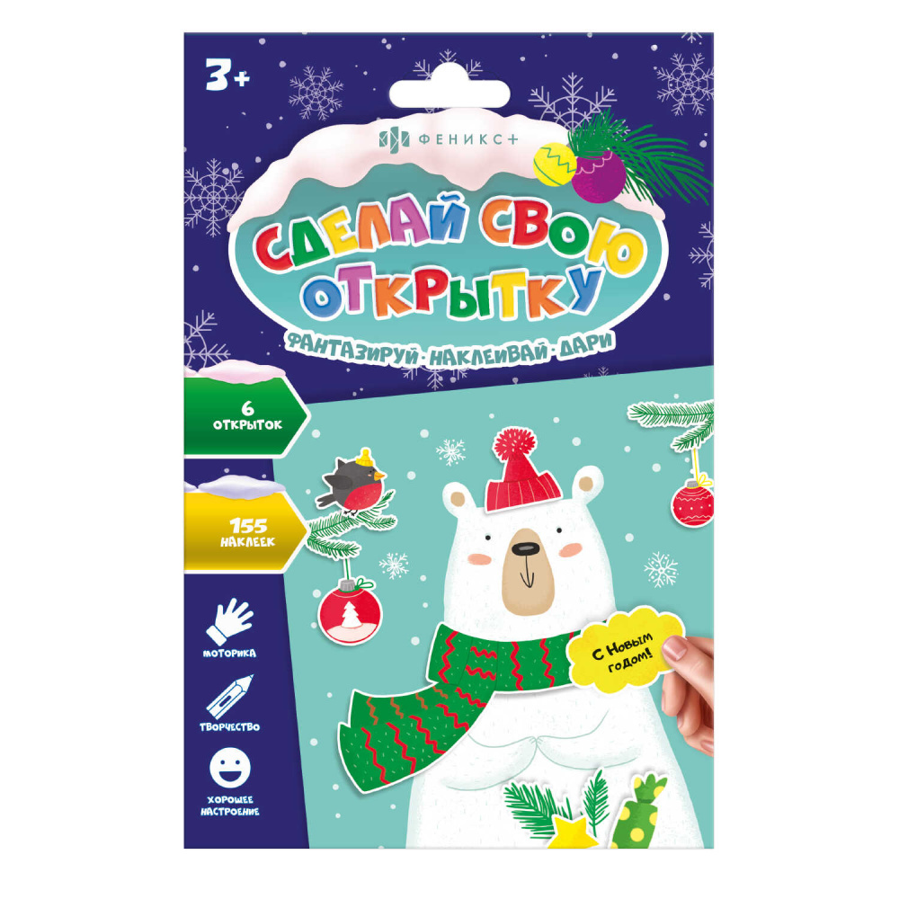Набор открыток для детей. Серия "Сделай свою открытку" С НОВЫМ ГОДОМ! /160x160 мм, полноцветная печать, 6 листов с наклейками /