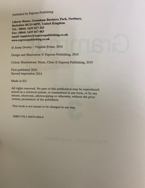 Жанр Грамматика Возрастные ограничения 0+ Переплет Мягкий Язык Английский Количество страниц 144 Страна производителя Великобритания Серия Grammar Targets Автор Virginia Evans, Jenny Dooley Год Издания 2014 Формат Печатная книга Возраст Средняя школа Производитель Express Publishing