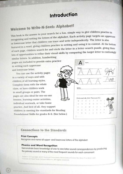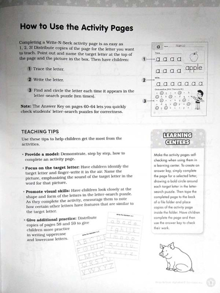 Your search for a kid-pleasing way to build handwriting and reading skills is over! These reproducible, multi-skill activity pages offer children a super-fun way to practice the letters of the alphabet-first by tracing and writing, then by completing age-perfect puzzles. As children do the activities, they develop essential letter formation, letter recognition, and visual discrimination skills. Ideal for independent work, learning centers, day-starters, fast-finishers, and homework. -