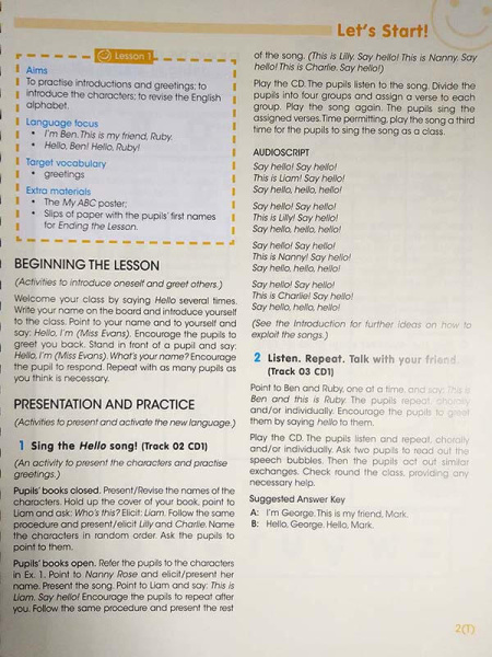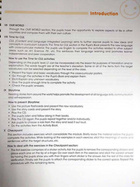 Также книга для учителя содержит подробное описание курса каждого урока и ответы на задания из учебника и рабочей тетради. Также содержит множество советов и интересных идей о том, как представить языковой материал, дополнительные упражнения и игры, а также аудиоскрипты. -