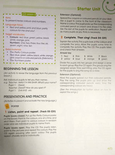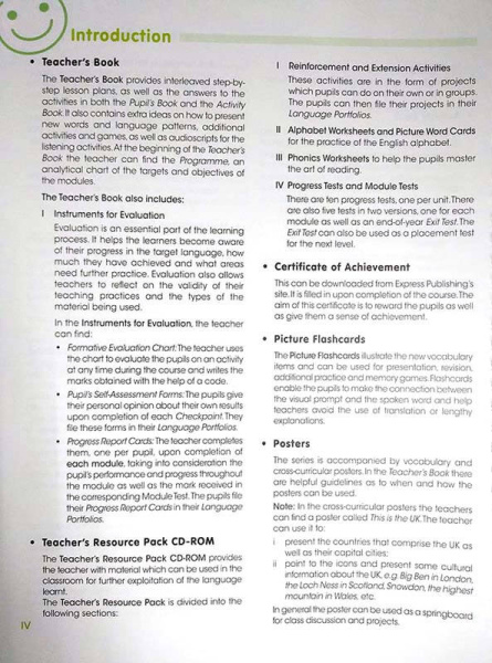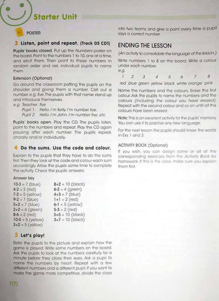 Также книга для учителя содержит подробное описание курса каждого урока и ответы на задания из учебника и рабочей тетради. Также содержит множество советов и интересных идей о том, как представить языковой материал, дополнительные упражнения и игры, а также аудиоскрипты. -