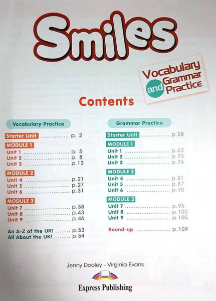 Жанр Учебники Возрастные ограничения 3+ Переплет Мягкий Язык Английский Количество страниц 112 Страна производителя Великобритания Серия Smiles Автор Jenny Dooley, Virginia Evans Год Издания 2017 Формат Печатная книга Возраст Начальная школа Производитель Express Publishing
