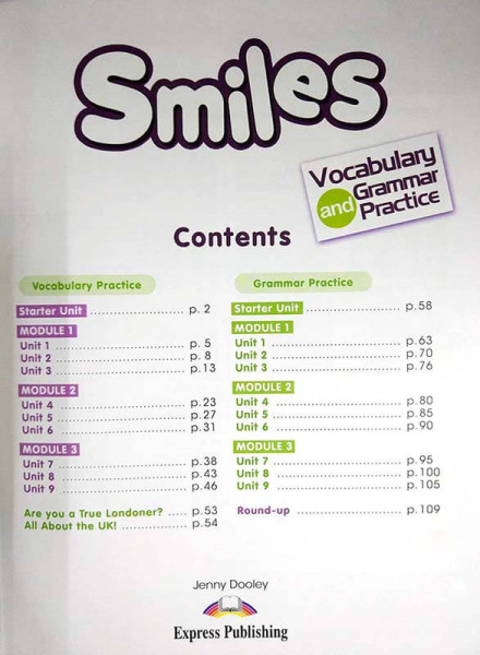 Жанр Учебники Возрастные ограничения 3+ Переплет Мягкий Язык Английский Количество страниц 112 Страна производителя Великобритания Серия Smiles Автор Jenny Dooley, Virginia Evans Год Издания 2017 Формат Печатная книга Возраст Начальная школа Производитель Express Publishing