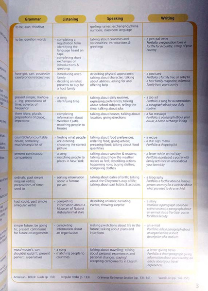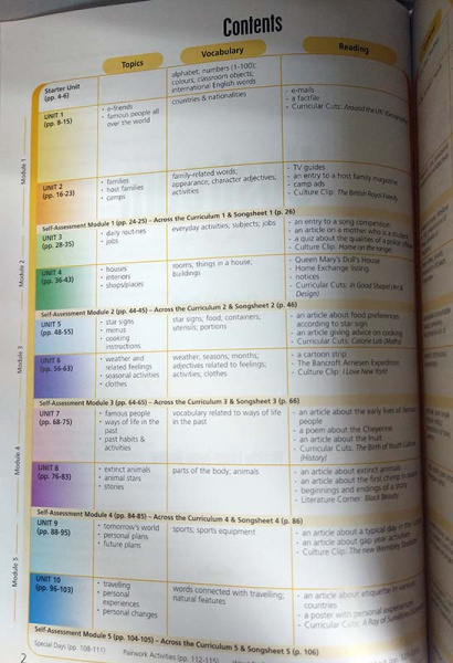 Каждый уровень УМК состоит из пяти модулей и обеспечивает систематическое развитие всех четырех языковых навыков – аудирование, говорение, чтение и письмо.