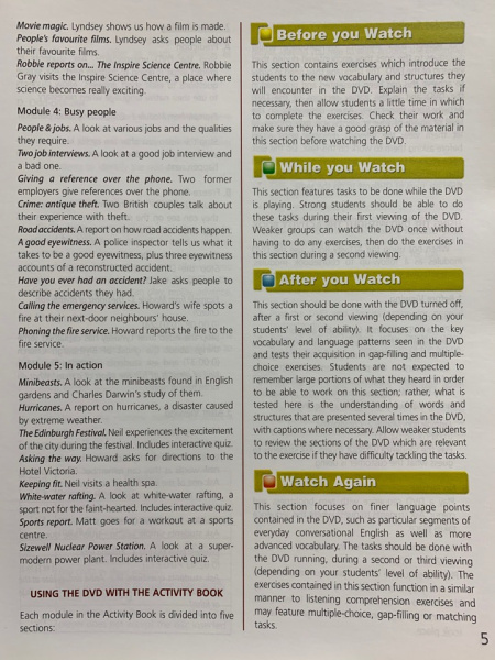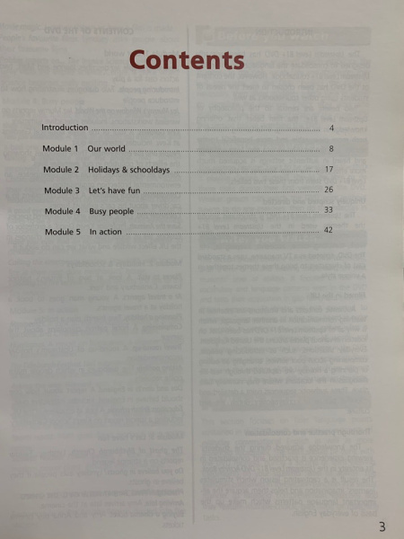 Каждый уровень УМК состоит из пяти модулей и обеспечивает систематическое развитие всех четырех языковых навыков – аудирование, говорение, чтение и письмо.