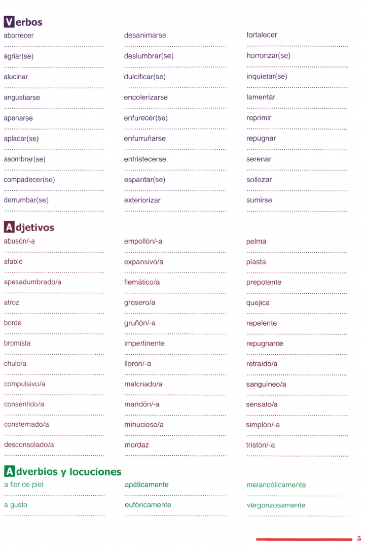 Для студентов: Это дополнительный материал для расширения и совершенствования словарного запаса и обогащения языковых навыков. Пособие предназначено для студентов продвинутого уровня, от B2 до C2, желающих расширить свой словарный запас для более точного и эффективного общения на испанском языке. Книга идеально подходит для студентов, готовящихся к экзаменам DELE B2, C1 или C2, так как включает лексику, соответствующую требованиям этих уровней.
