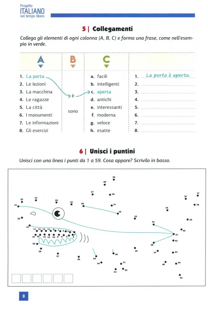 «Progetto Italiano nel tempo libero» — это пособие, разработанное для того, чтобы предложить иностранцам, изучающим итальянский язык, увлекательное и ненавязчивое повторение материала с множеством мотивирующих и интересных заданий.