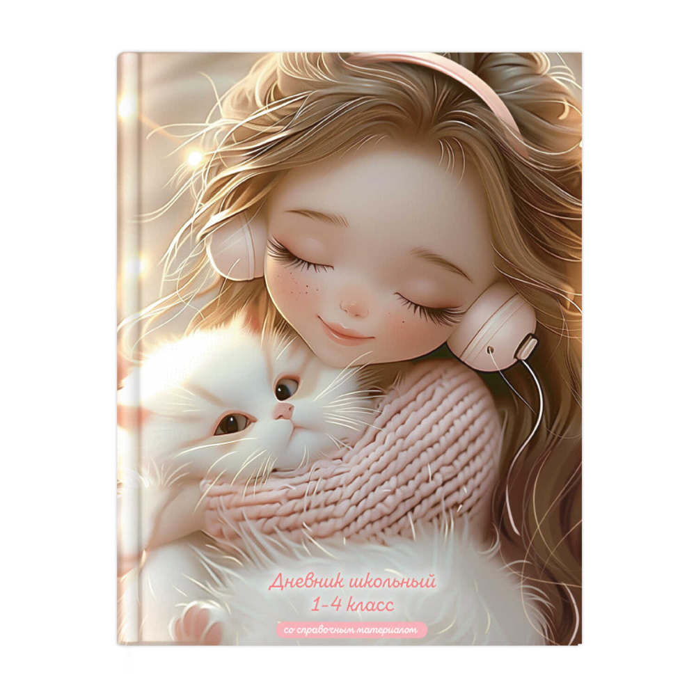 Дневник школьный 1-4 класс ДЕВОЧКА В НАУШНИКАХ И КОТЕНОК (А5+, 48 листов, твёрдый переплёт)