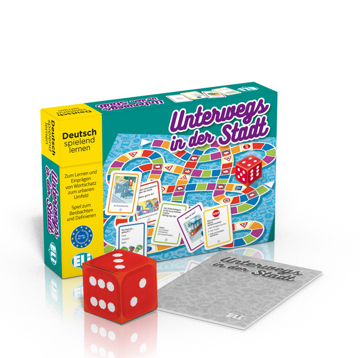 Unterwegs in der Stadt - это живая настольная игра, в которой с помощью иллюстраций, связанных с темой города и его особенностями, учащиеся в увлекательной форме запоминают, изучают и развивают свой лексический запас.