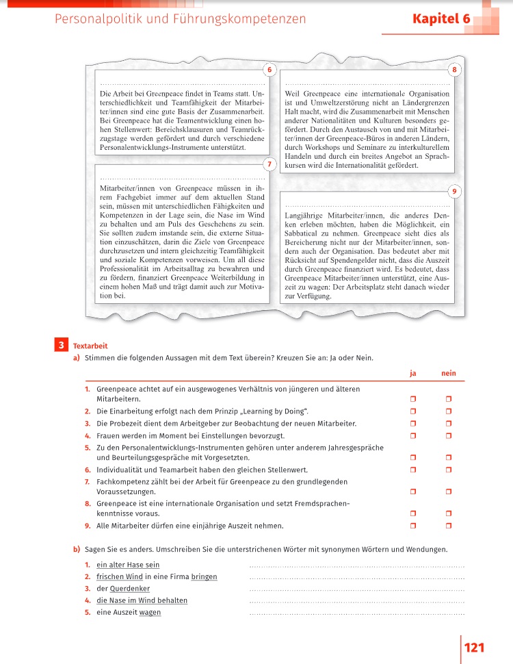 Пособие «Entscheidungen» объединяет учебник и рабочую тетрадь в один том. Это обеспечивает тесную связь между обучением языку и языковой подготовкой/практикой. Обзор целей обучения в начале каждой главы позволяет учащимся быстро сориентироваться и дает общее представление о темах, содержании и ключевых моментах.